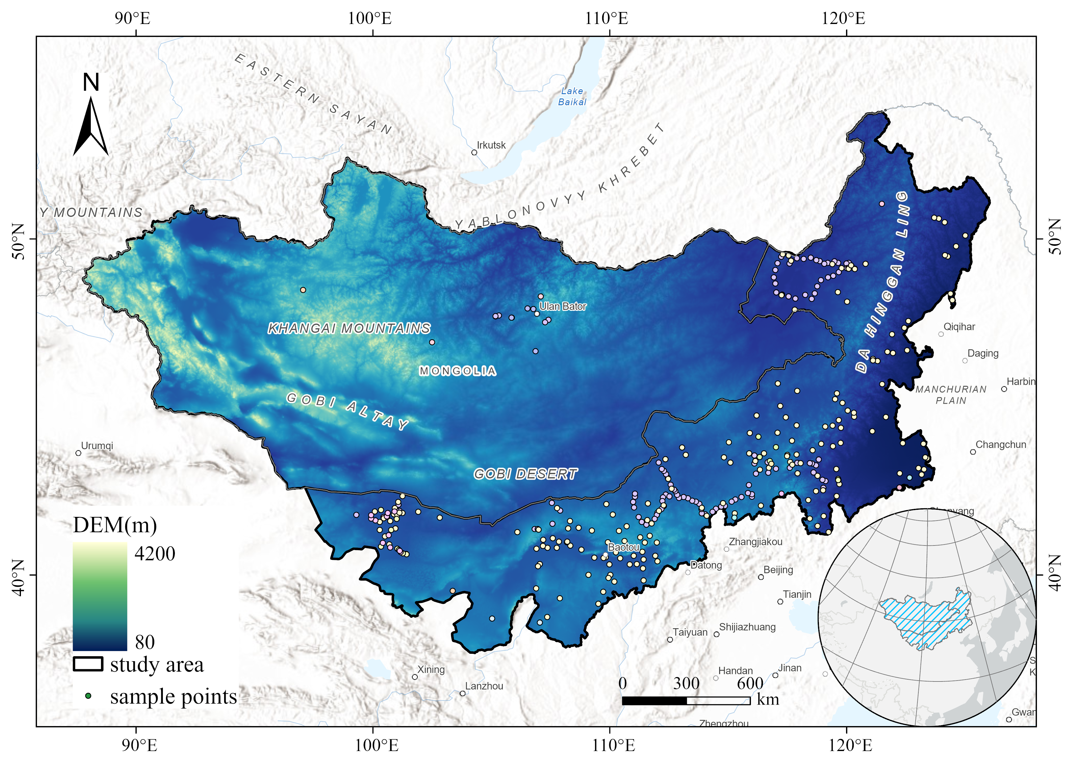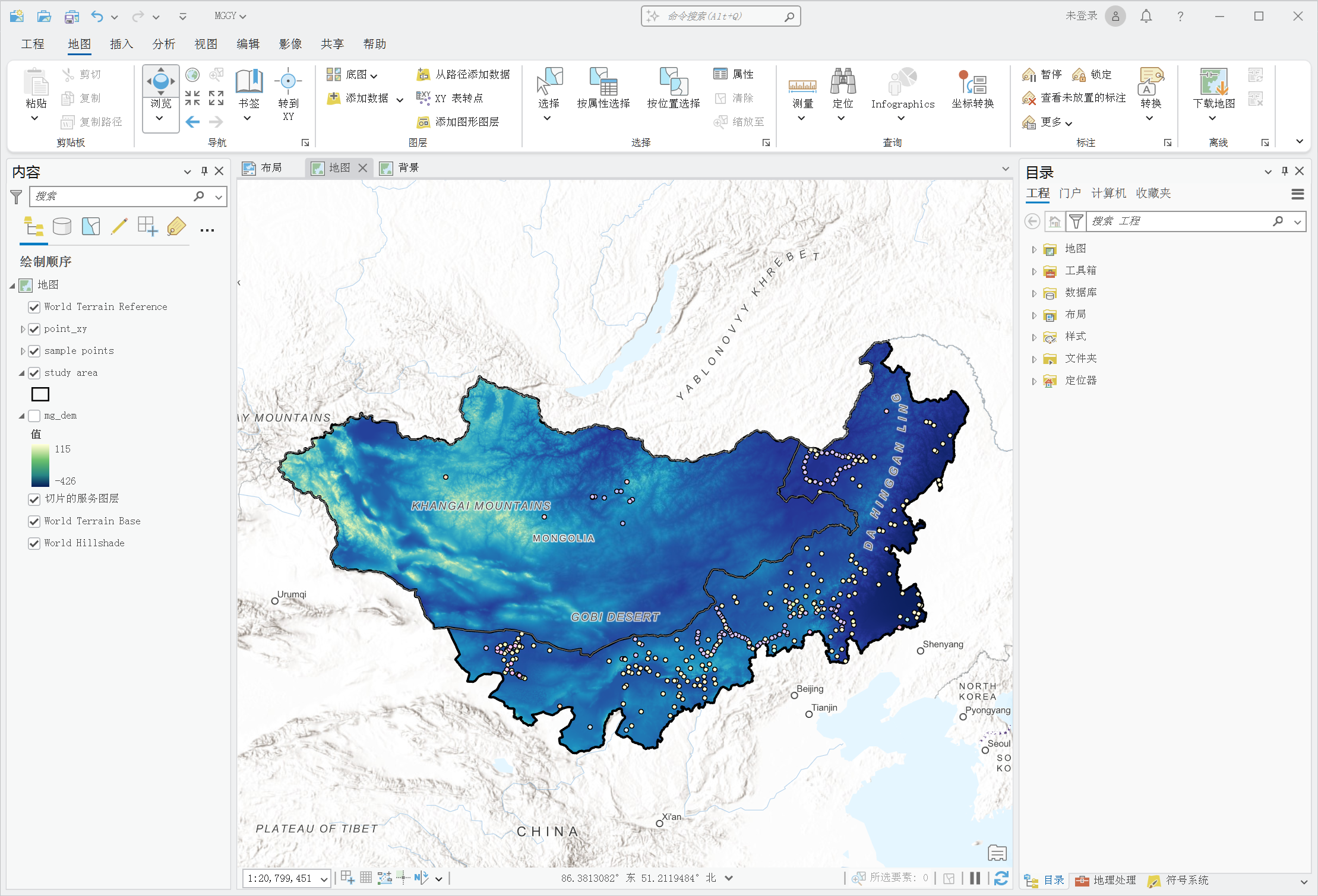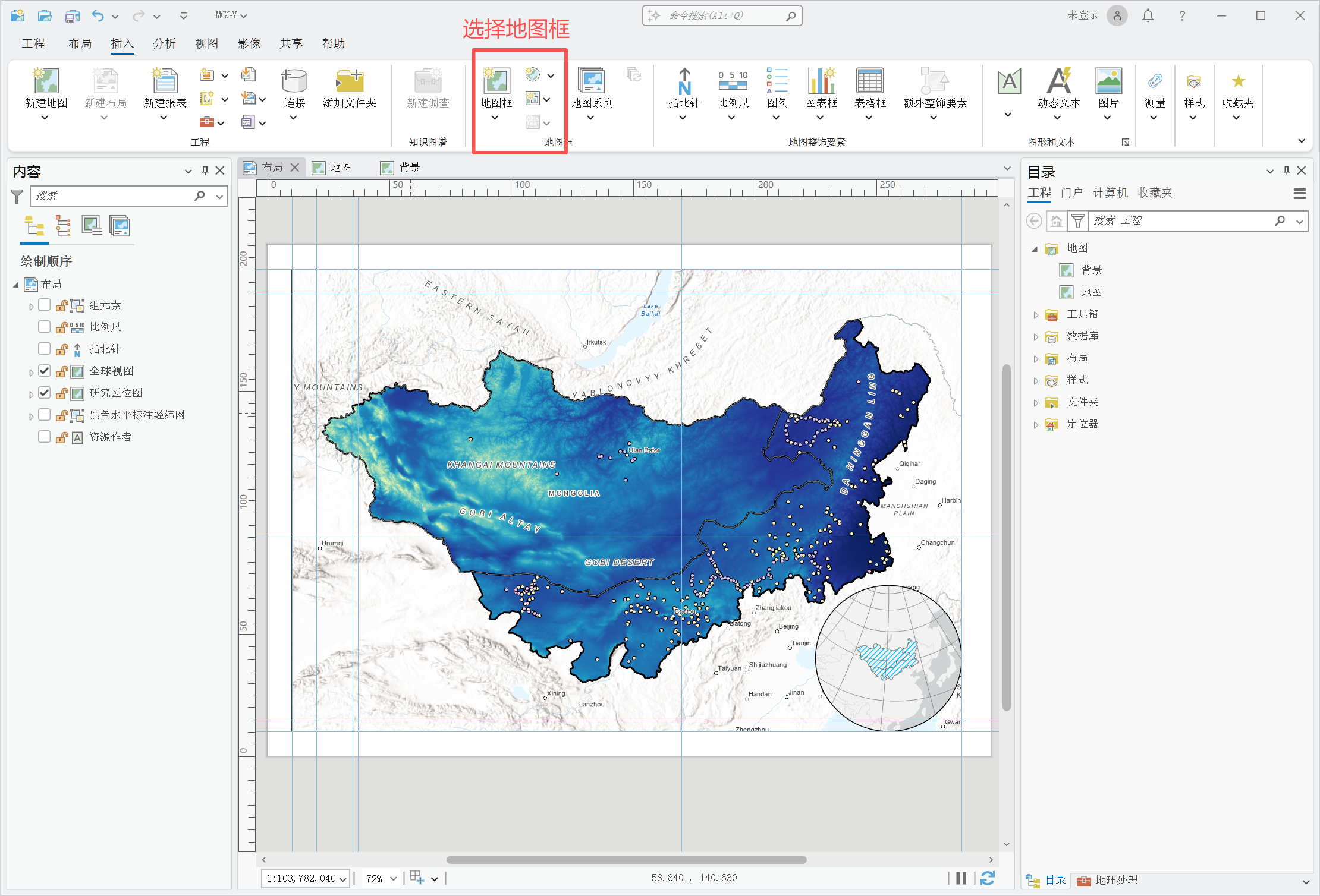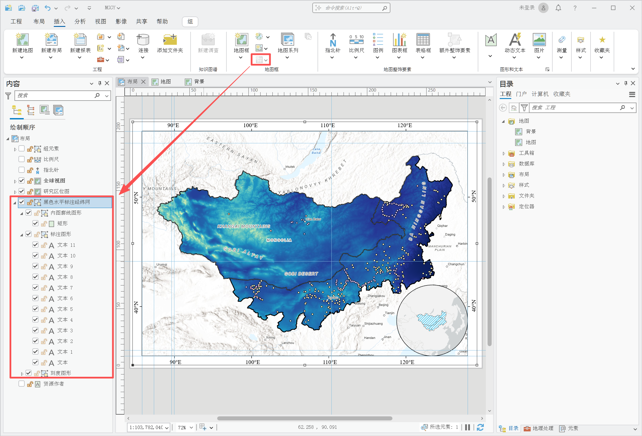 最近在做蒙古高原土壤有机碳反演,需要一张同时兼顾“研究区细节”和“区域区位关系”的地图。本文按实操流程记录一次完整制作过程。
